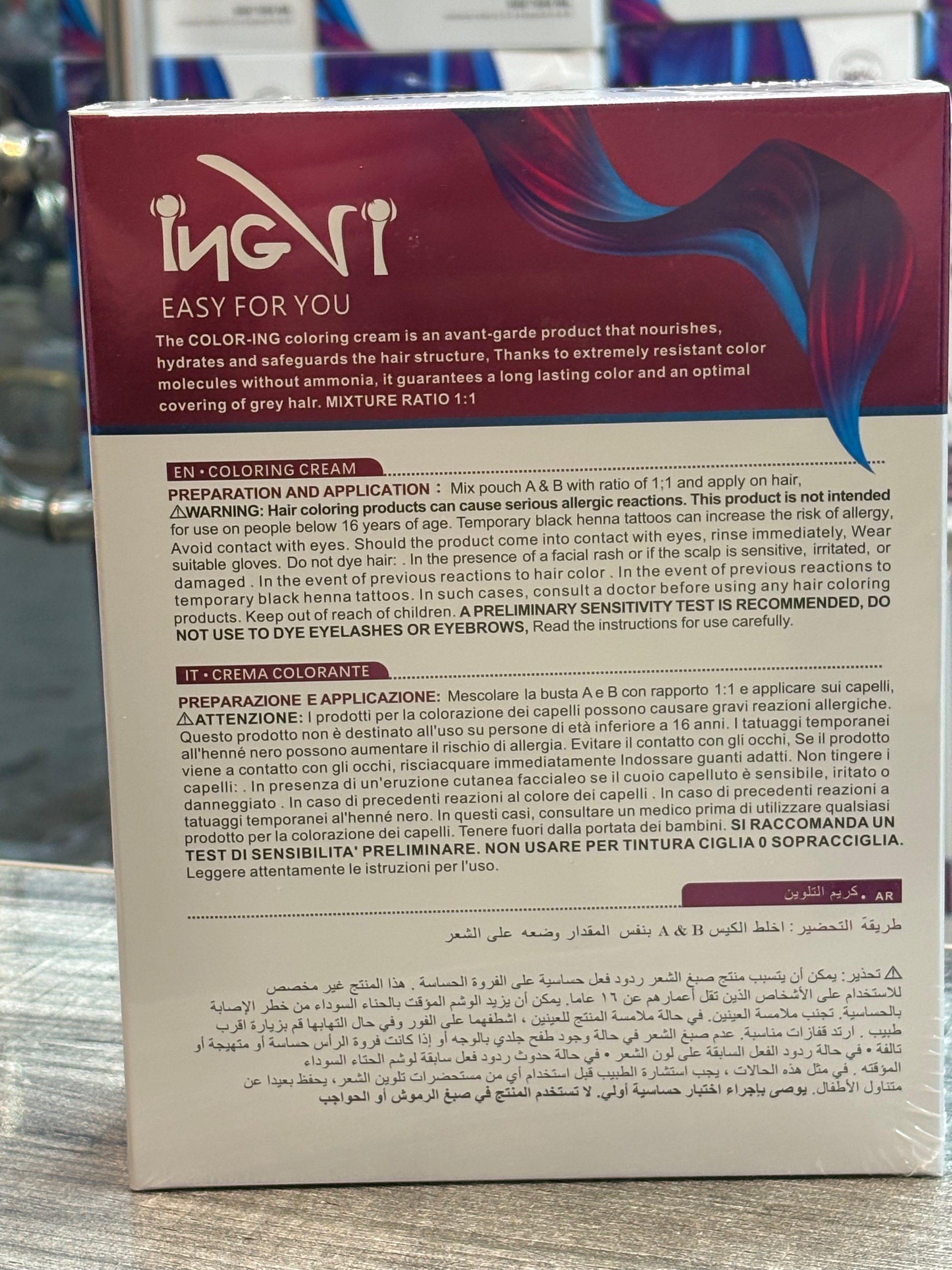 Ing Hair Color Cream Is A Professional-grade Hair Coloring Formula That Provides Deep, Rich, And Radiant Color With Superior Coverage. Enriched With Keratin, Argan Oil, And Botanical Extracts, It Not Only Colors But Also Nourishes And Strengthens The Hair, Leaving It Smooth, Shiny, And Vibrant.